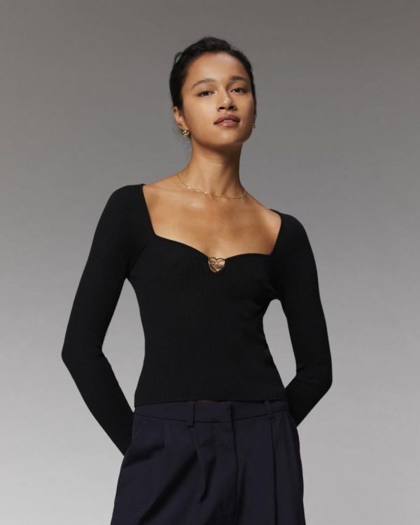 FROM FUTURE Chemises, T-shirts & Tops | Top Manches Longues Décolleté Coeur Noir Femme