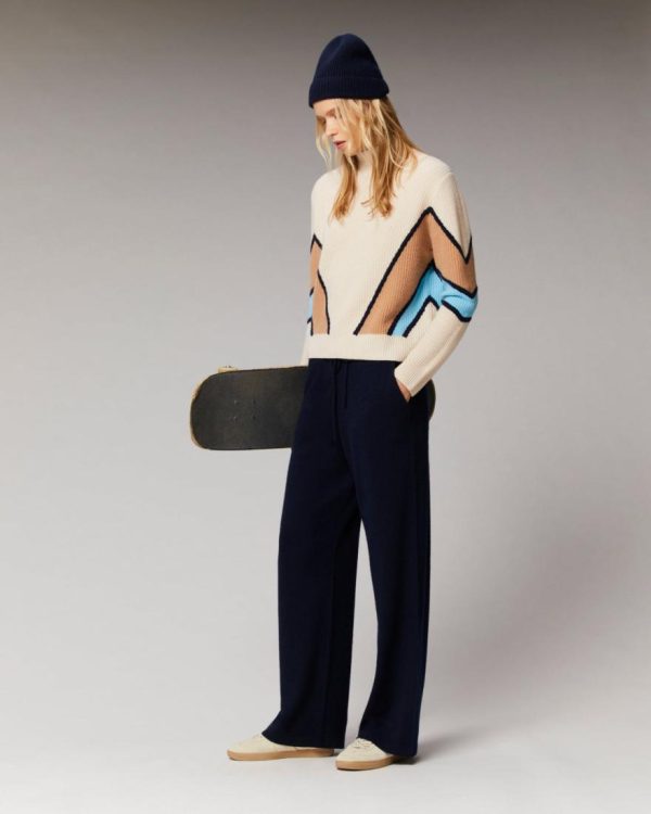 Jeux de lignes et de couleurs pour ce pull court, oversize et confectionné en cachemire 4 fils. Muni d’un col montant, de manches longues et de bords côtelés, des bandes latérales tricolores se dessinent pour structurer votre silhouette futuriste avec une pointe d’audace. À la fois chic et casual, mixez-le à un jean droit ou une jupe en satin.
