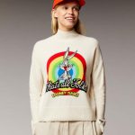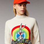 Bugs Bunny est à l’honneur et s’invite sur ce pull oversize aux couleurs vibrantes. Confectionné en cachemire 2 fils, il est muni d’un col montant, de manches longues et de bords côtelés. Insufflant un esprit ludique et une touche de nostalgie, il dévoile l’emblématique slogan « That’s all Folks! » signé Looney Tunes et une broderie signature « From Future » sur le poignet gauche.
