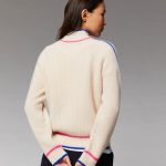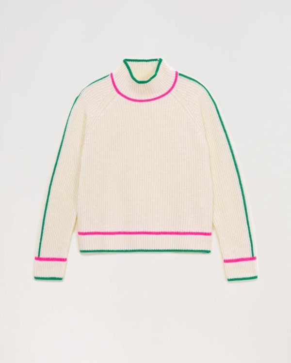 FROM FUTURE Cols Montants Cachemire | Pull Col Montant Tricolore Maille Perlee Ecru Femme