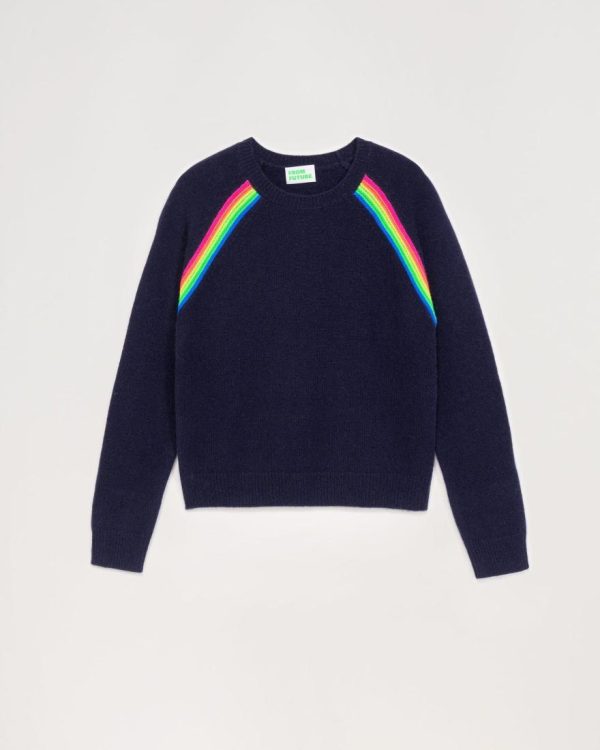 FROM FUTURE Cols Ronds Cachemire | Pull Col Rond Bandes Multicolore Raglan Navy Femme
