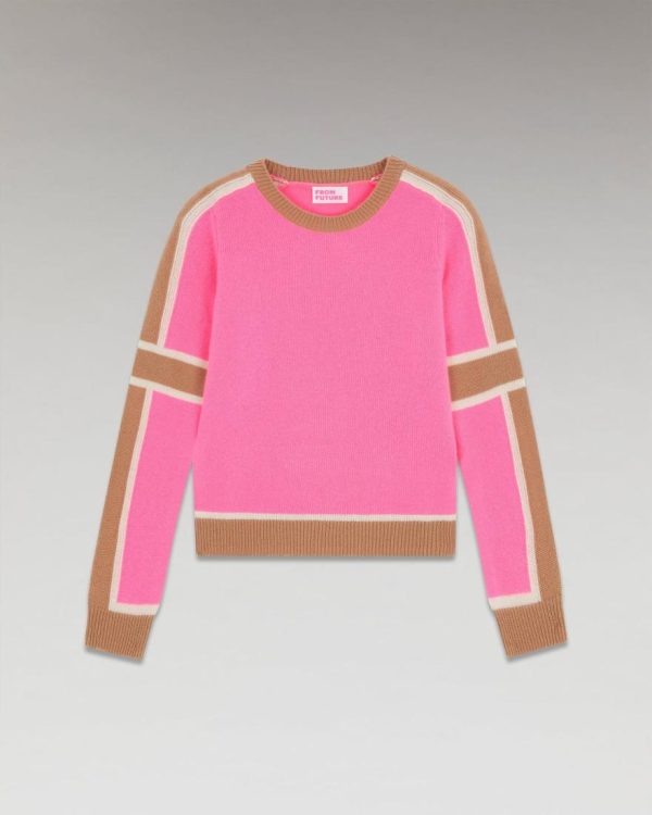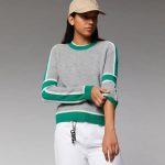 Réhaussez votre vestiaire avec une touche d’audace, pour une allure qui transcende l’espace. Confectionné en cachemire 4 fils, ce pull court à col rond révèle des bandes tricolores contrastées le long des manches et des bords côtelés. Twistez votre silhouette avec un pantalon droit, une casquette signature et des sneakers.