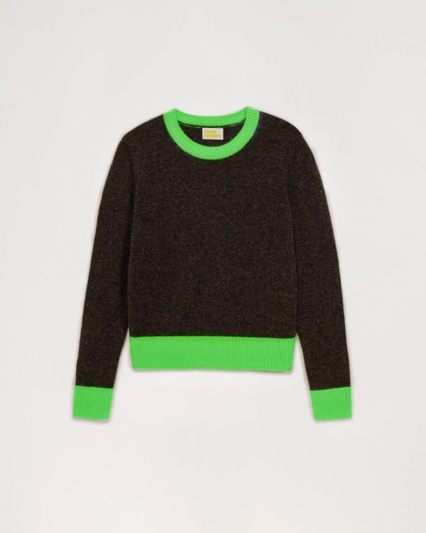 FROM FUTURE Cols Ronds Cachemire | Pull Col Rond Bicolore Léger Anthracite Femme