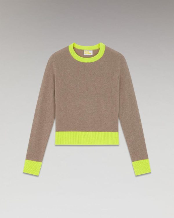 Explorez l’audace futuriste avec ce pull court aux lignes affirmées twisté de couleurs vibrantes. Confectionné en cachemire 2 fils, il conjugue douceur, légèreté et élégance. Muni d’un col rond et de manches longues, ses bords bicolores révèlent un jeu de contrastes, évoquant un horizon infini. À porter sans modération, optez pour une allure décontractée en l’associant à un pantalon fluide ou un jean flare.