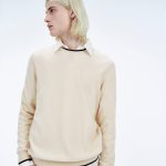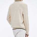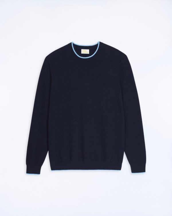 Douceur céleste et style cosmique : ce pull en cachemire muni de manches longues dévoile un col rond à bords contrastés.