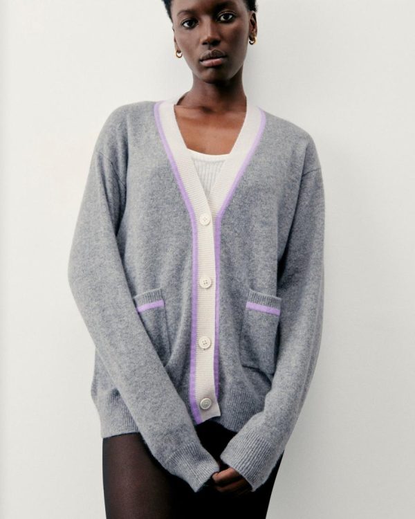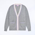 Confectionné en cachemire 2 fils, ce pull cardigan long et oversize est muni de manches longues, de bords côtelés. La touche cosmique ? Il révèle des bandes contrastées, soulignant les deux poches, le col V et la fermeture boutonnée. Idéal pour structurer votre allure, portez-le seul ou en superposition.