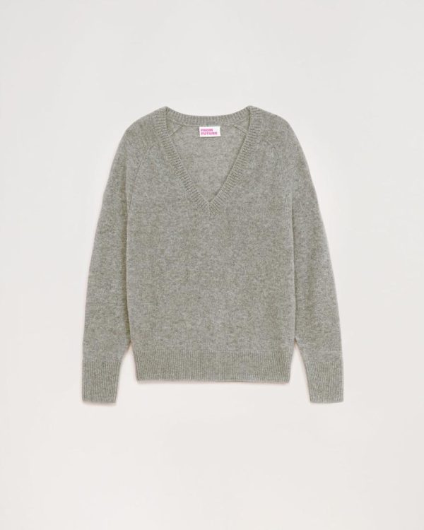 FROM FUTURE Cols V Cachemire | Pull Col V Oversize Léger Gris Chiné Foncé Femme