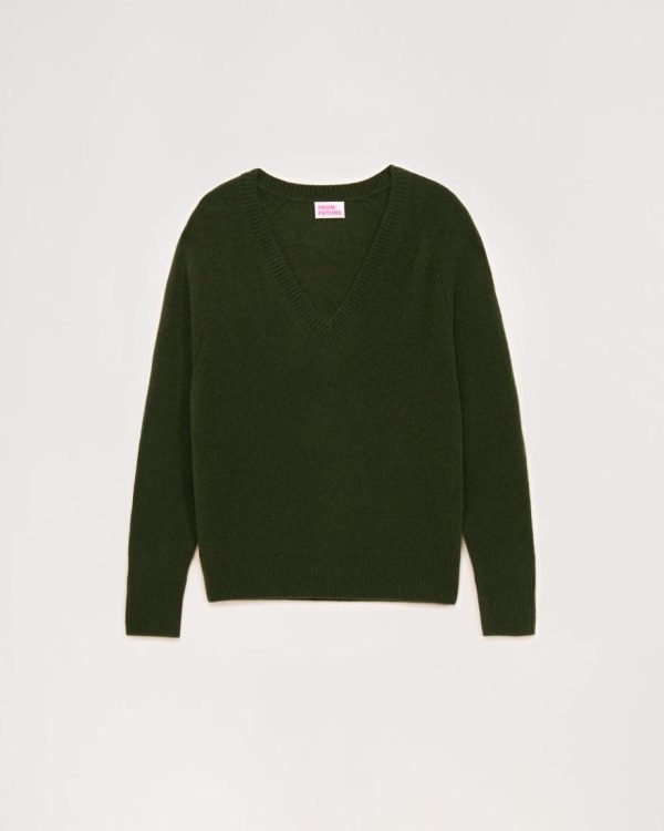 FROM FUTURE Cols V Cachemire | Pull Col V Oversize Léger Kaki Femme