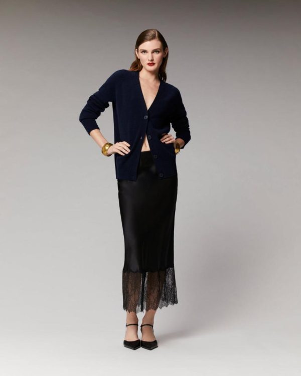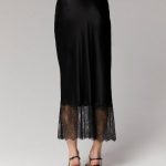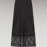 Empreinte de douceur et de délicatesse, cette jupe mi-longue incarne une vision futuriste de la sophistication. Confectionnée en satin de soie léger, brillant et soyeux, elle dessine une silhouette structurée, marquée d’une taille élastiquée. À la fois chic et glamour, elle offre un tombé fluide orné d’un jeu de découpes et de bords en dentelle. Idéal pour toutes les occasions, mixez-là à un gilet en maille, des bijoux et une paire d’escarpins.