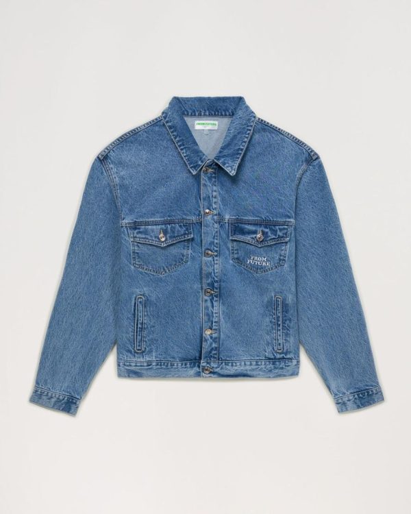 Découvrez notre veste en jean signature. Col à revers, manches longues et manchettes. Fermeture par boutons en métal sur le devant.