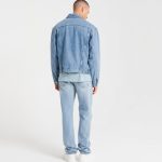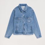 Veste en jean avec détail brodé « From Future » sur la poche frontale gauche. Col à revers, manches longues et manchettes. Poches poitrine plaquées avec rabat et poches latérales à la taille. Ourlet avec pattes à la taille (non ajustable). Fermeture par boutons en métal sur le devant.