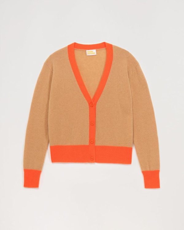 FROM FUTURE Pulls En Cachemire | Pull Cardigan Bicolore Léger Camel Femme