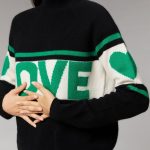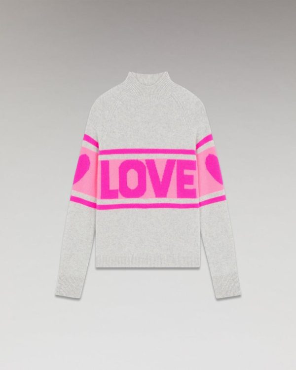 FROM FUTURE Pulls En Cachemire | Pull Col Montant Bande Love Gris Chiné Clair Femme