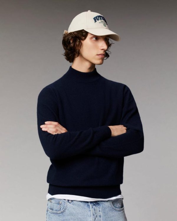 FROM FUTURE Pulls En Cachemire | Pull Col Montant Basique Léger Navy Homme