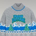 Confectionné en cachemire 2 fils, ce pull oversize vous transporte au cœur des sommets étoilés. Muni d’un col montant et de manches longues, des lignes futuristes soulignent les bords côtelés. Orné de flocons de neige, de montagnes enneigées et de sapins majestueux, il arbore fièrement la signature « From Future » à l’avant. Rejoignez le Club et arpentez les pistes avec audace et élégance !