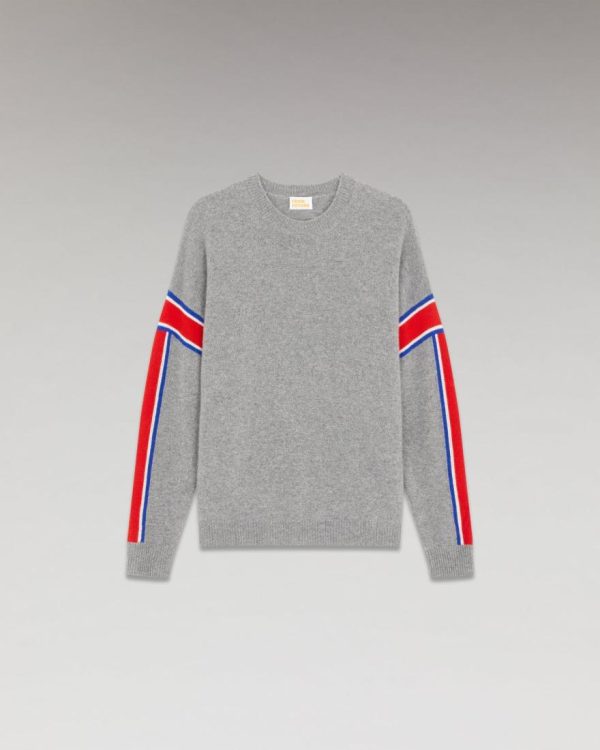 Inspiration rétro et élégance futuriste pour ce pull oversize confectionné en cachemire 4 fils. Muni d’un col rond et de bords côtélés, des bandes tricolores contrastées se dessinent sur les manches longues pour une allure qui transcende l’espace. Mêlant confort, douceur et audace, il se mixe aisément à un jean ample ou un jogging casual.