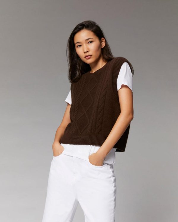 FROM FUTURE Pulls En Cachemire | Pull Sans Manche Torsades Chocolat Femme