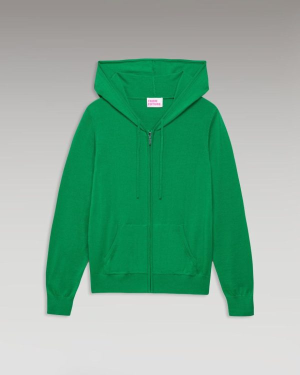 Une laine mérinos chaude, moelleuse et ultra aérée pour ce hoodie zippé muni d’une capuche à cordons de serrage, de poches et de manches longues. Un essentiel du vestiaire FROM FUTURE à porter sans modération.