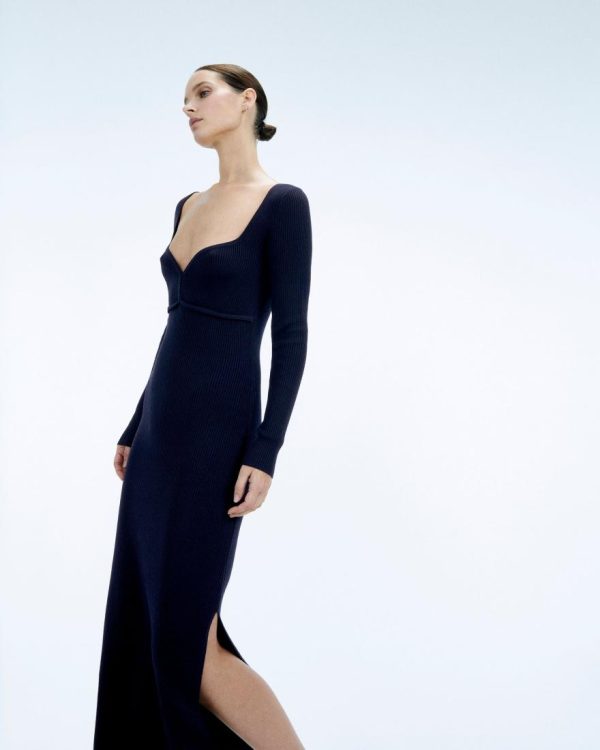 Le futur s’annonce audacieux dans cette robe longue, ajustée et confectionnée en laine mérinos. Munie d’une encolure droite et de manches longues, elle séduit par ses détails travaillés à l’avant et sa jupe évasée au tombé impeccable. Mêlant élégance et douceur, complétez votre allure futuriste avec une paire de sneakers ou d’escarpins.