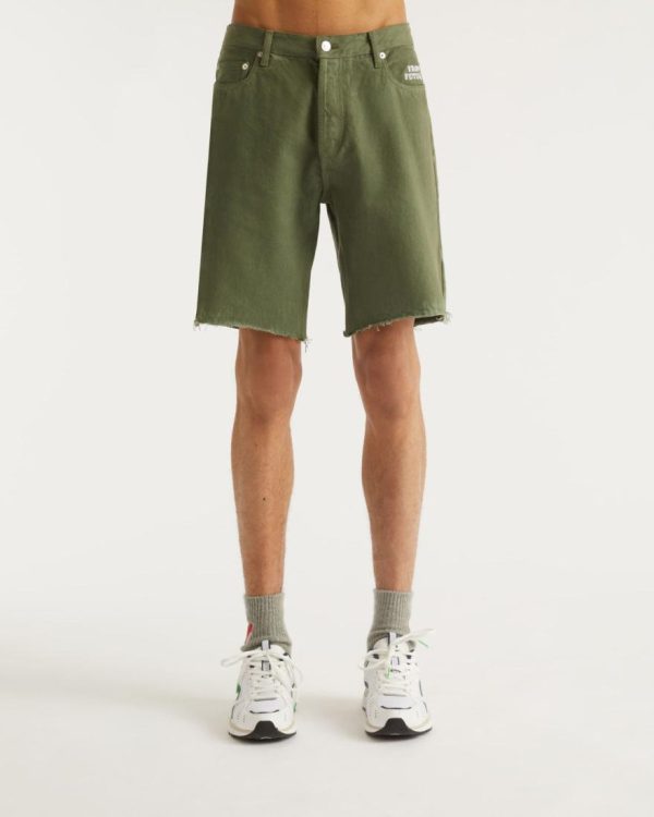 Muni d’une fermeture boutonnée, ce short bermuda en jean affiche des poches, un bord franc et une broderie signature « From Future ».